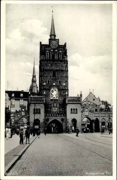 Ak Hansestadt Rostock, Kröpeliner Tor, Wappen, Passanten
