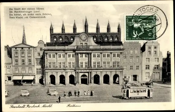 Ak Hansestadt Rostock, Markt, Rathaus, Staßenbahn