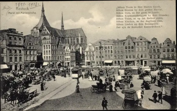 Ak Hansestadt Rostock, Markt mit Marienkirche, Gedicht Söben Toern