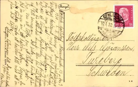 Zustand, siehe Scan, 1930, gelaufen- Stengel 62979 - ca 14 cm X 9 cm