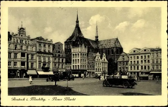 Ak Hansestadt Rostock, Neuer Markt, Automobile