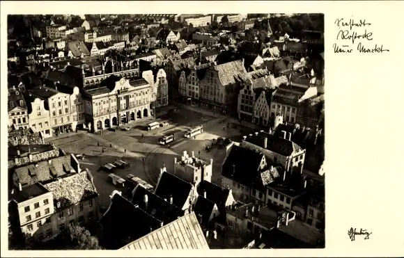 Ak Hansestadt Rostock, Neuer Markt, Fliegeraufnahme