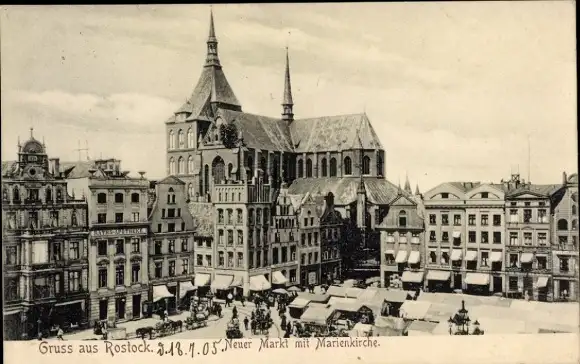 Ak Hansestadt Rostock, Neuer Markt und Marienkirche