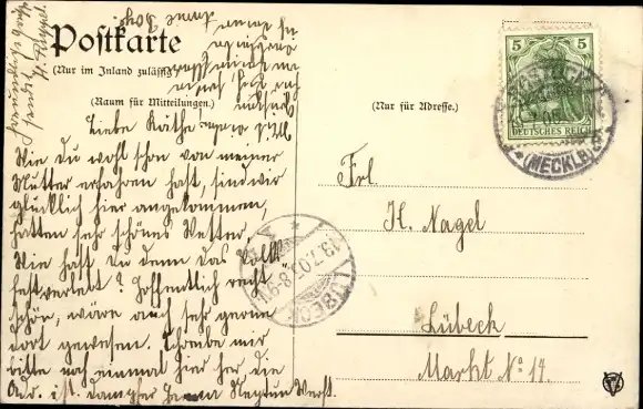 Zustand, siehe Scan, gelaufen, 1905 - ca 14 cm X 9 cm
