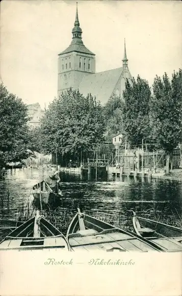 Ak Hansestadt Rostock, Nikolaikirche, Boote
