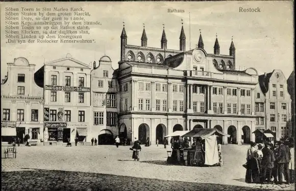 Ak Hansestadt Rostock, Rathaus, Gedicht, Geschäft Glasglühlicht