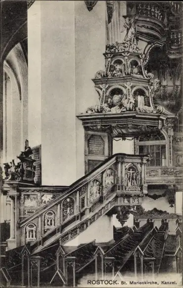 Ak Hansestadt Rostock, St. Marienkirche, Kanzel
