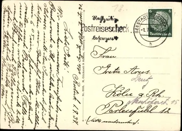 Zustand, siehe Scan, gelaufen, 1937 - ca 16 cm X 11 cm