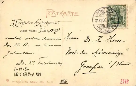 Zustand, siehe Scan, gelaufen, 1906 - ca 3 cm X 5 cm