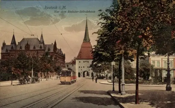 Ak Hansestadt Rostock, Steintor, Ständehaus, Straßenbahn