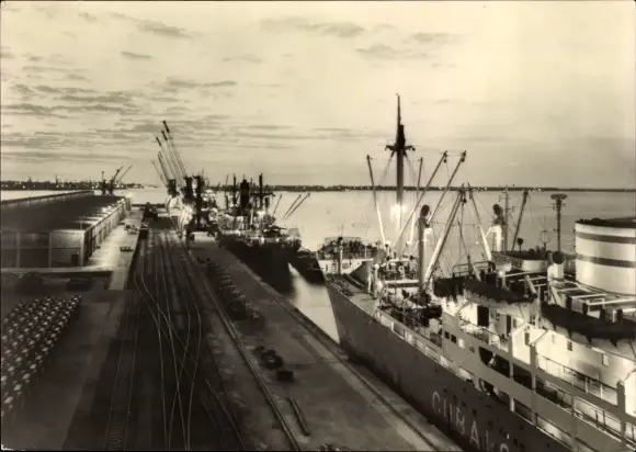 Ak Hansestadt Rostock, Überseehafen, Schiffe