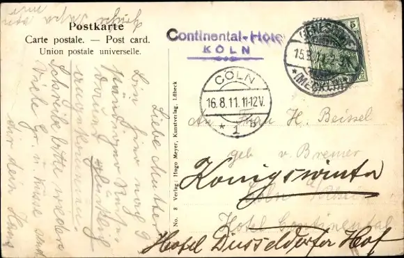 Zustand, siehe Scan, gelaufen, 1911 - ca 14 cm X 9 cm