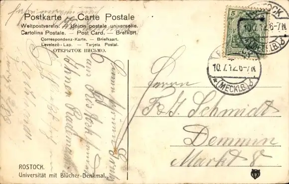 Ak Hansestadt Rostock, Universität, Blücher-Denkmal