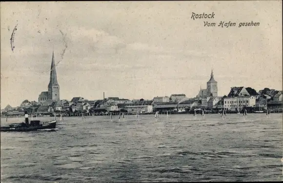 Ak Hansestadt Rostock, Vom Hafen gesehen