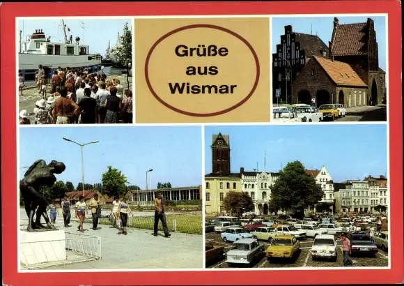 Ak Hansestadt Wismar, Anlegestelle Weiße Flotte, Wassertor, Volksschwimmhalle, Markt