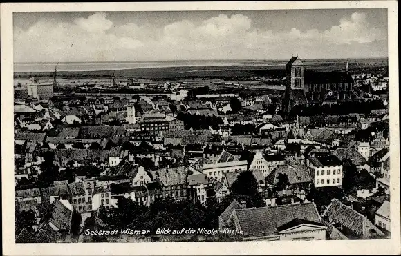 Ak Hansestadt Wismar, Blick auf die Nicolaikirche, Panorama