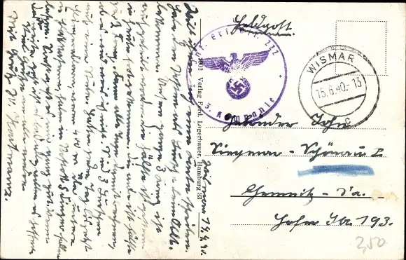 Zustand, siehe Scan, gelaufen, 1940 - ca 14 cm X 9 cm
