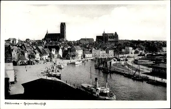 Ak Hansestadt Wismar, Gesamtansicht, Hafen