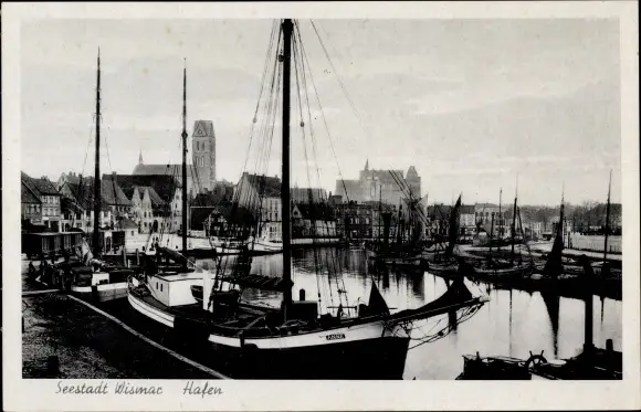 Ansichtskarte, Postkarte, Hafen, Schiffe, Boote, Dampfer, Boot