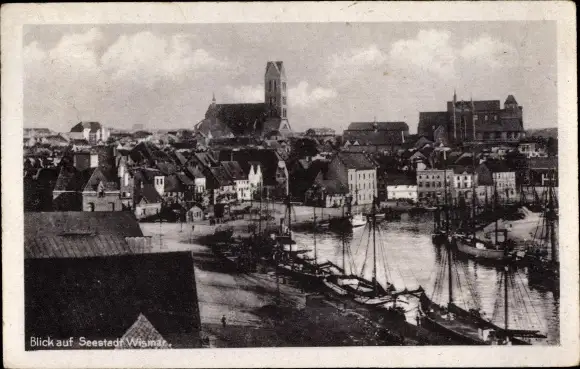 Ak Hansestadt Wismar, Hafen, Schiffe, Kirchen