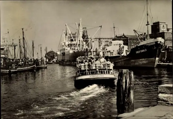 Ak Hansestadt Wismar, Hafenbild, Dampfer Stralsund, Schiff Greifswald