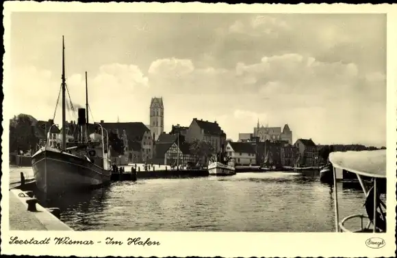Ak Hansestadt Wismar, Teilansicht mit Hafen