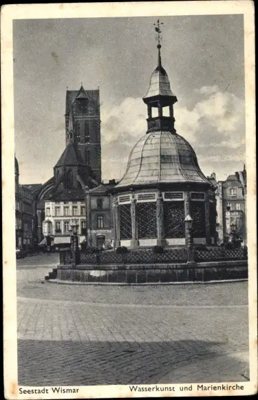 Ak Hansestadt Wismar, Wasserkunst und Marienkirche