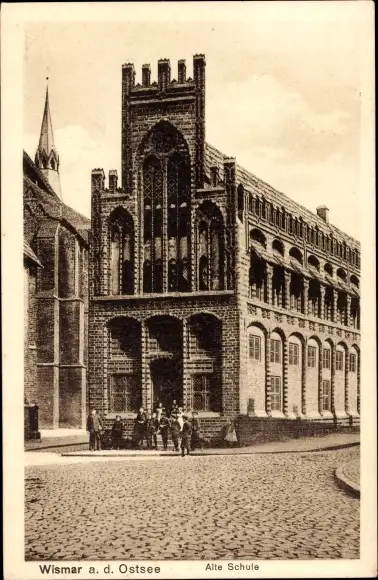 Ak Hansestadt Wismar, alte Schule, Straßenpartie