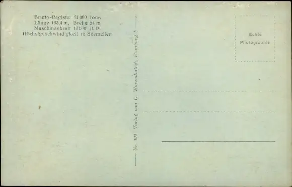 Ak Hapag Dampfer Hamburg, Doppelschraubendampfer