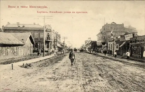 Ak Harbin Charbin China, Straße, Passanten, Geschäfte