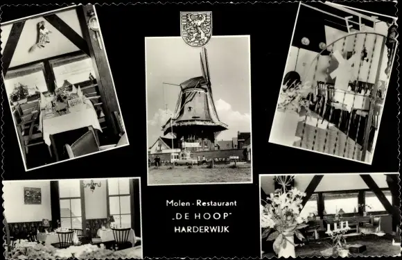 Ak Harderwijk Gelderland, Molen-Restaurant De Hoop, Strandboulevard, Innenansichten, Mühle