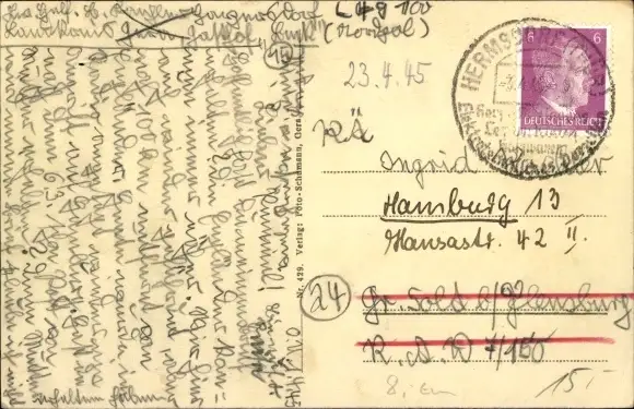 Zustand, siehe Scan, gelaufen, 1945 - ca 14 cm X 9 cm