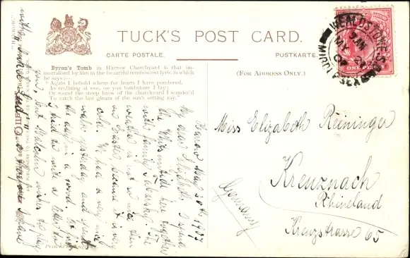 Zustand, siehe Scan, gelaufen, 1907 - ca 14 cm X 9 cm