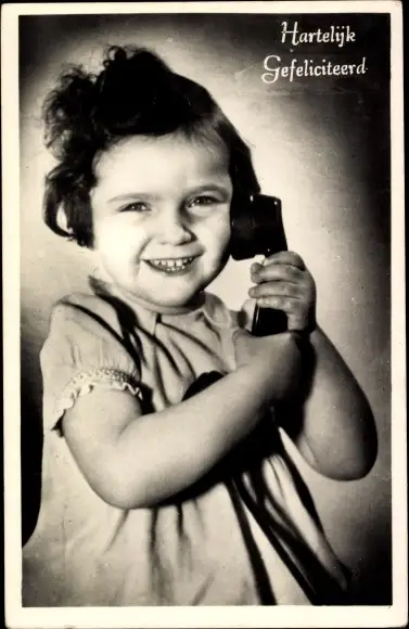 Ak Hartelijk Gefeliciteerd, Glückwunsch, Kinderportrait, Mädchen mit Telefon