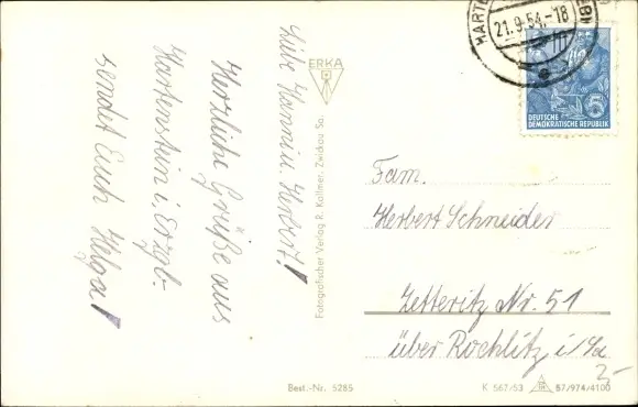 Zustand, siehe Scan, gelaufen, 1954 - ca 14 cm X 9 cm