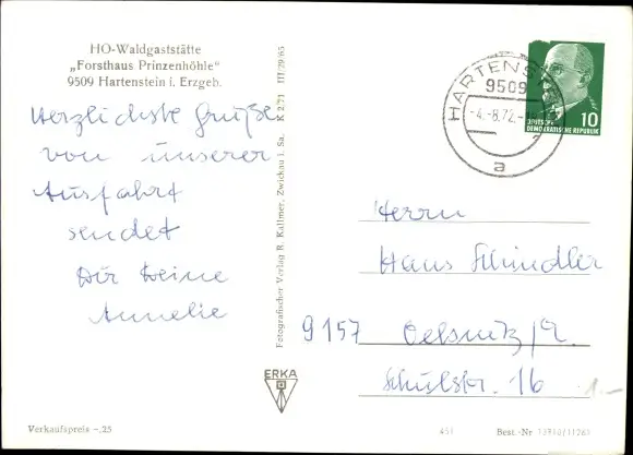 Ak Hartenstein im Erzgebirge Sachsen, HO Waldgaststätte Forsthaus Prinzenhöhe