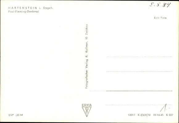Ak Hartenstein im Erzgebirge Sachsen, Paul-Fleming-Denkmal