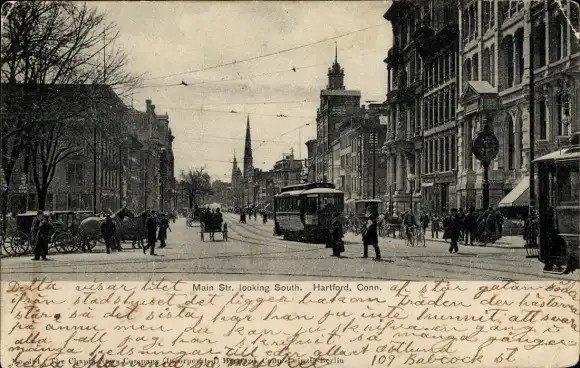 Ak Hartford Connecticut USA, Main Street, Straßenbahn