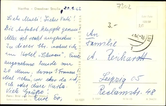 Zustand, siehe Scan, gelaufen, 1962 - ca 14 cm X 9 cm