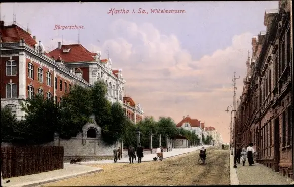 Ak Hartha in Sachsen, Wilhelmstraße, Bürgerschule
