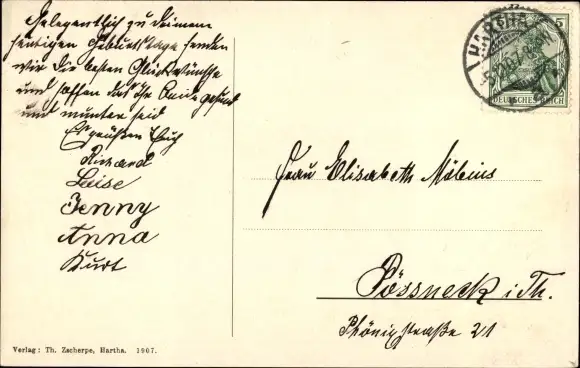 Zustand, siehe Scan, gelaufen, 1907 - ca 14 cm X 9 cm