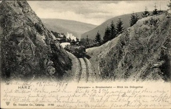 Ak Harz, Harzquer- und Brockenbahn, Drängelthal