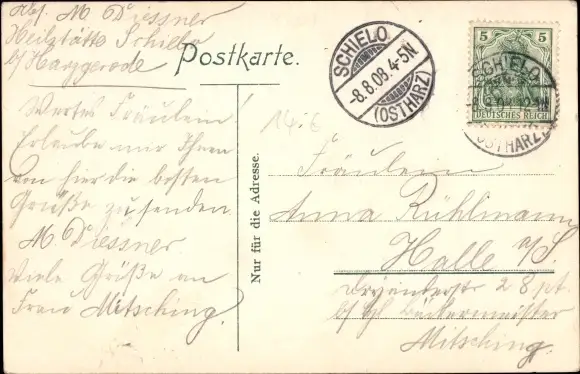 Zustand, siehe Scan, gelaufen, 1908 - ca 14 cm X 9 cm
