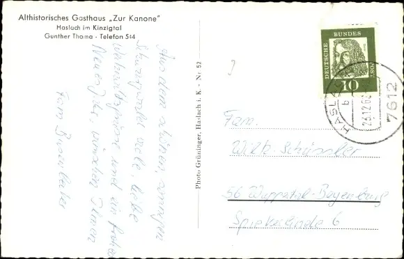 Ak Haslach im Kinzigtal Schwarzwald, Althistorisches Gasthaus Zur Kanone