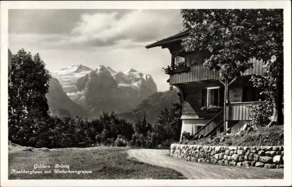 Ak Hasliberg Kt Bern Schweiz, Goldern Brünig, Hasliberghaus mit Wetterhorngruppe