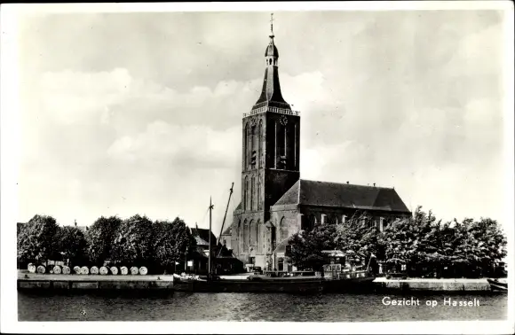 Ak Hasselt Overijssel, Teilansicht mit Kirche
