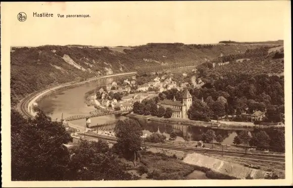 Ak Hastière Wallonien Namur, Vue panoramique, Fluss, Brücke