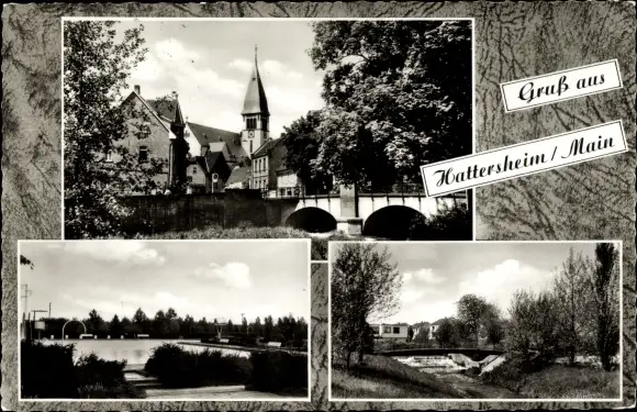 Ak Hattersheim am Main, Brücke, Totalansicht