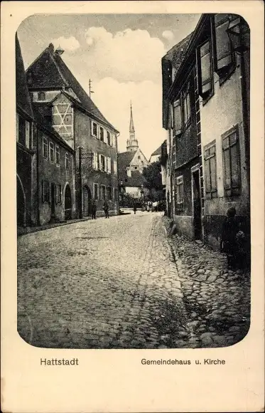 Ak Hattstatt Elsass Haut Rhin, Gemeindehaus, Kirche