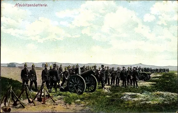 Ak Haubitzenbatterie, deutsche Soldaten in Uniform, Geschütz